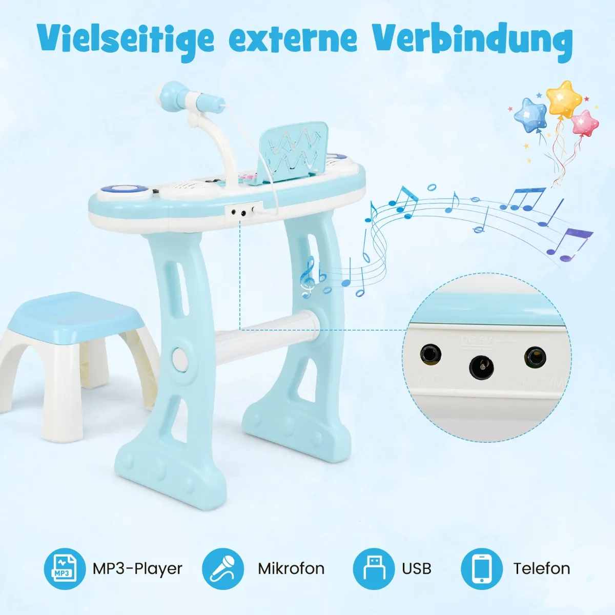 - 1 x vaikiškas pianino klaviatūros komplektas