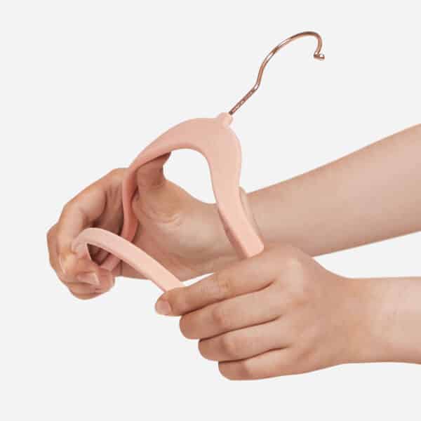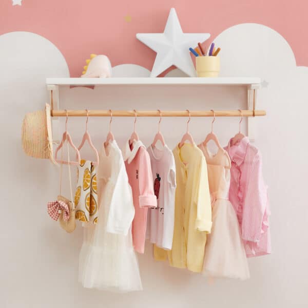 Šviesiai rožinės spalvos vaikiškų pakabų rinkinys, pagamintas iš aukštos kokybės ABS plastiko, aksomo ir metalinio kabliuko. Šios pakabos yra puikus pasirinkimas, siekiant tvarkingai laikyti vaikiškus drabužius.