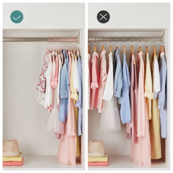 Nekabinkite ant pakabų rūbų, viršijančių maksimalią apkrovą.