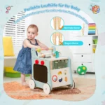 Vaikštynė 31×34,5x42cm įvairių spalvų – funkcionalus ir saugus medinis žaislas vaikams nuo 12 mėnesių. Ši vaikštynė su integruota imitacine virtuvėle ir žaidimų elementais skatina motorikos, koordinacijos ir kūrybiškumo ugdymą žaidimo metu.