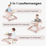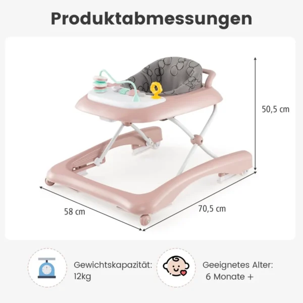Vaikštynė 70,5x58x50,5cm rožinės ir pilkos spalvos – praktiškas sprendimas jūsų vaiko motoriniams įgūdžiams ugdyti. Sulankstoma vaikštynė su reguliuojamu aukščiu padeda vaikui saugiai žengti pirmuosius žingsnius ir skatina judėjimą.