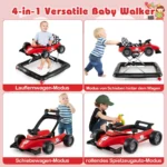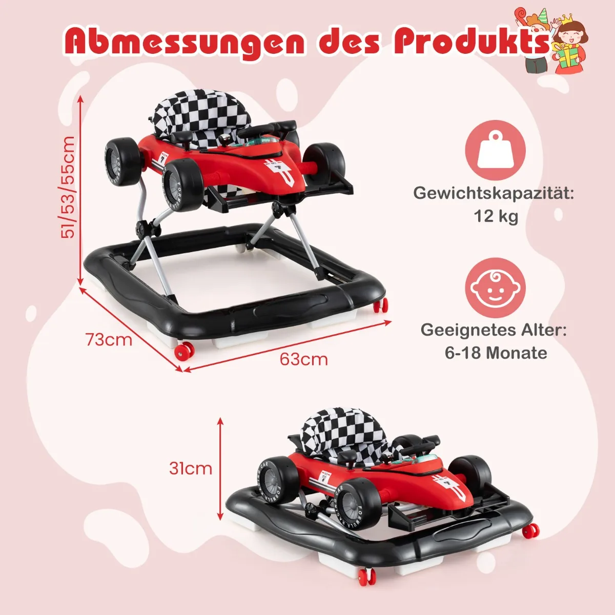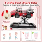 Vaikštynė 73x63x55cm, raudonos ir juodos spalvos – praktiškas sprendimas jūsų mažylio judėjimo įgūdžiams tobulinti. Universalus 4-in-1 dizainas leidžia naudoti vaikštynę keliais režimais ir skatina aktyvų žaidimą bei taisyklingą vaikščiojimo laikyseną.