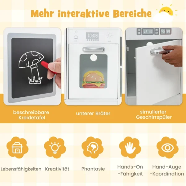 - Įtraukianti maisto gaminimo patirtis su imituota virykle, skrudintuvu ir indaplove.