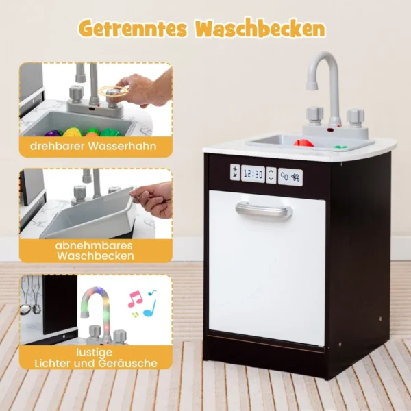 • Nuimama ir besisukanti kriauklė su maišytuvu, skleidžiančiu garsus ir šviesas (reikalingos 2 AAA baterijos, nepridedamos).
