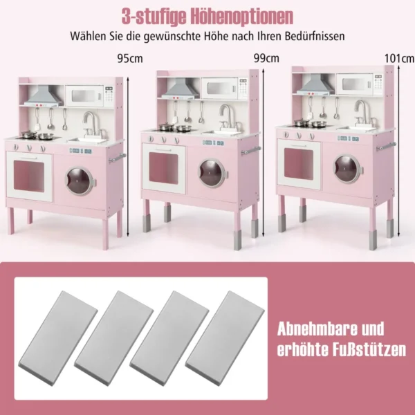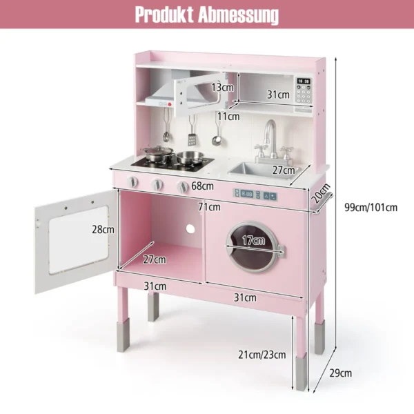 Vaikų virtuvė 71x29x101cm rožinės spalvos puikiai tinka mažųjų kūrybai ir vaidmenų žaidimams. Žaidimų virtuvė su reguliuojamu aukščiu ir įvairiomis funkcijomis skatina vaikų vaizduotę ir praktinius įgūdžius gaminant.