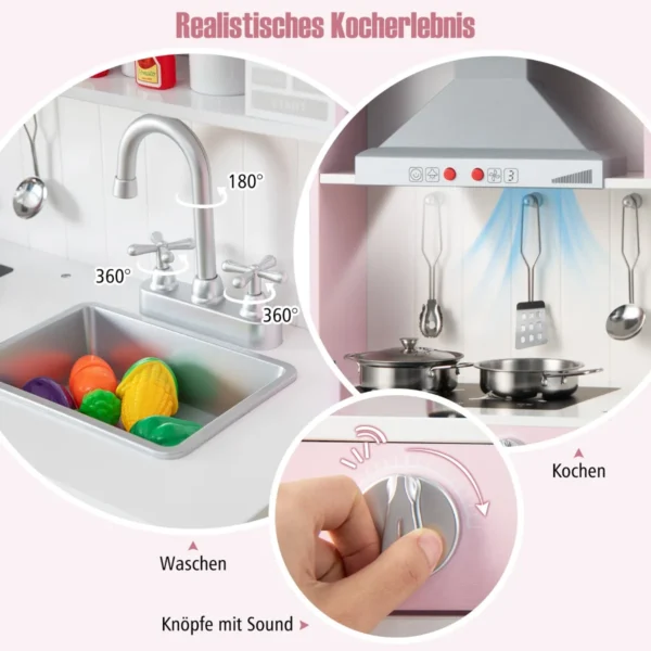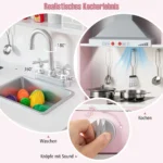 - Žaidimų virtuvė su garso gaubtu, šviesomis ir besisukančiu maišytuvu suteikia tikrovišką vaidmenų žaidimo patirtį.