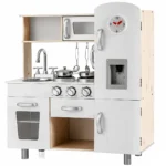 Vaikų virtuvė 72,5x29x81,5 cm baltos ir šviesiai rudos spalvos – žaidimų rinkinys, leidžiantis vaikams patirti tikrovišką maisto gaminimą. Ši medinė žaidimų virtuvė turi viryklę, kriauklę, šaldytuvą ir įvairius priedus, skatinančius vaikų kūrybiškumą ir praktinius įgūdžius.