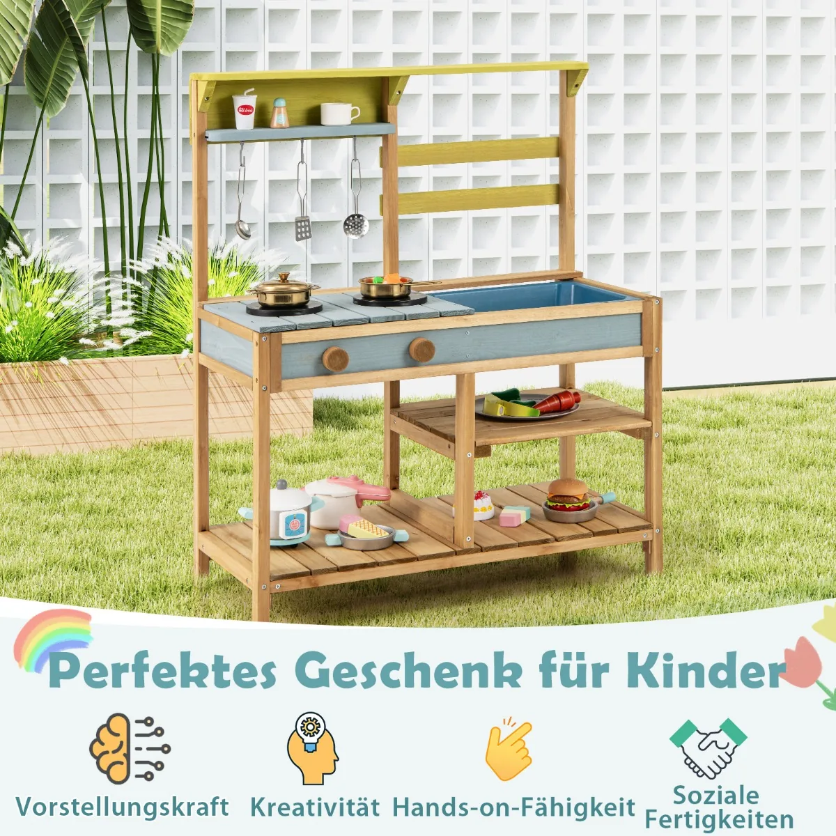 Vaikų virtuvė 75x36x92cm įvairių spalvų – puikus pasirinkimas mažiesiems, mėgstantiems žaisti vaidmenimis ir imituoti maisto gamybą. Ši medinė žaidimų virtuvė tinka naudoti tiek namuose, tiek lauke, skatindama vaikų kūrybiškumą ir praktinius įgūdžius.