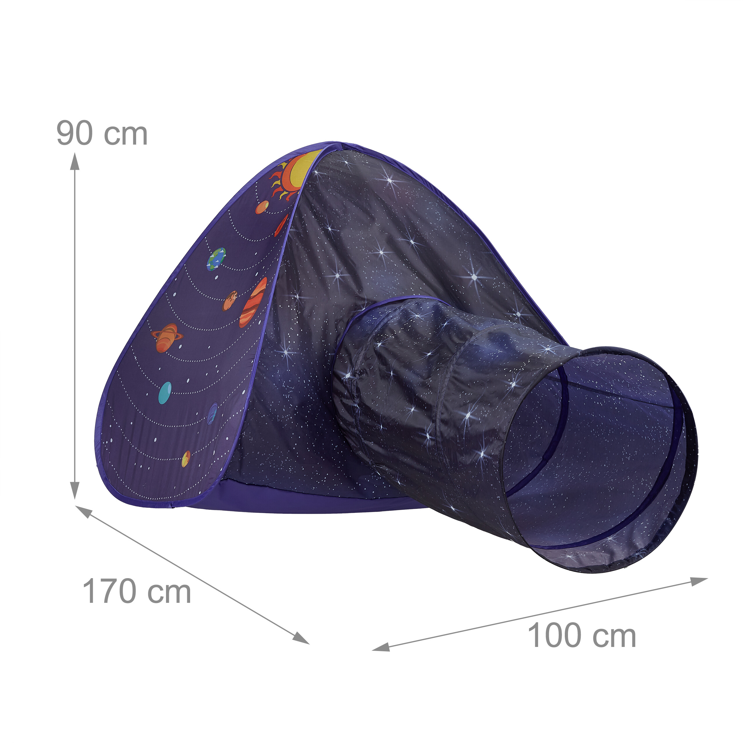Vaikų žaidimų namukas su 1 tuneliu “Kosmosas” – 90x170x100 cm, tamsiai mėlynos spalvos