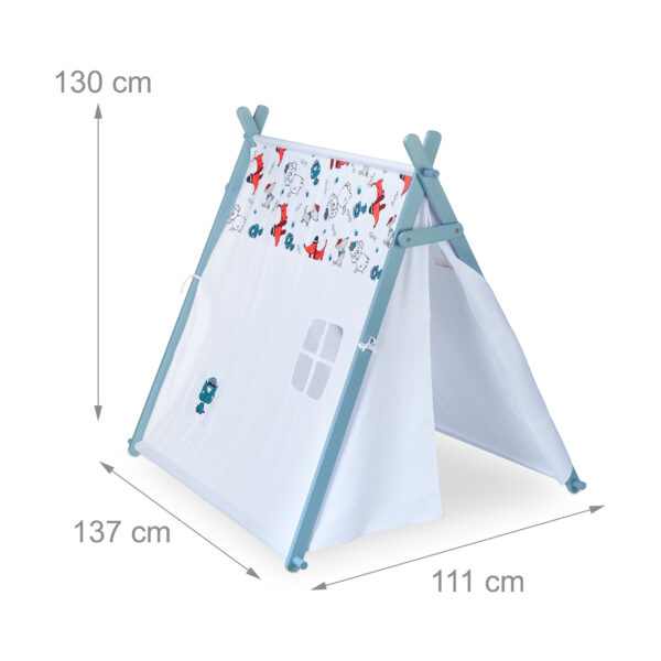 Vaikų žaidimų namukas „Teepee” 130x111x137cm, baltos/šviesiai mėlynos spalvos