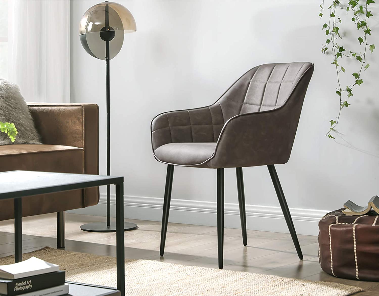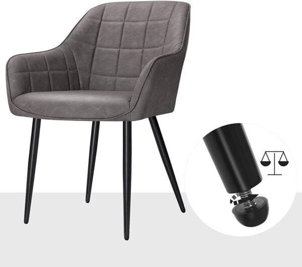 Išbandykite jaukumą: Ergonomiškas dizainas, 7 cm storio putplasčio paminkštinimas, aukštos kokybės PU danga ir patvarios metalinės kojos, kurių apkrova iki 110 kg – šie elementai sukuria tvirtą ir patogią kėdę. Dar geriau, kad kėdė yra gražios išvaizdos, kuri įneša malonią atmosferą į bet kurį kambarį.