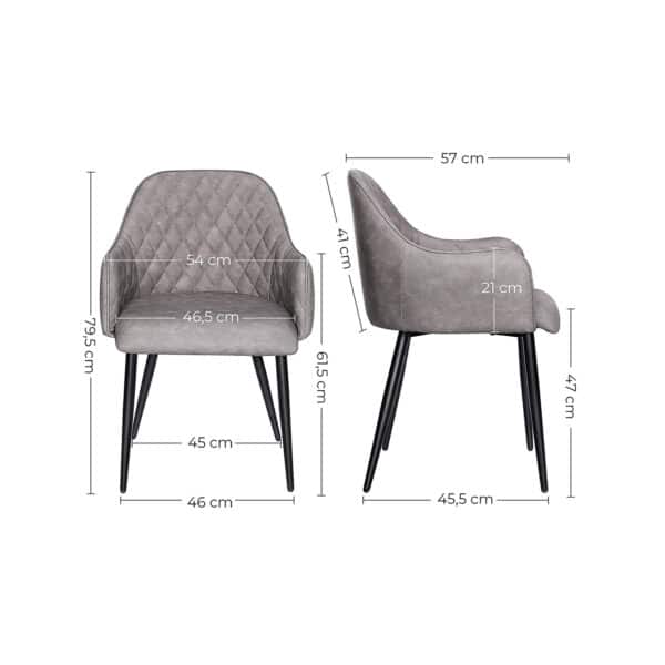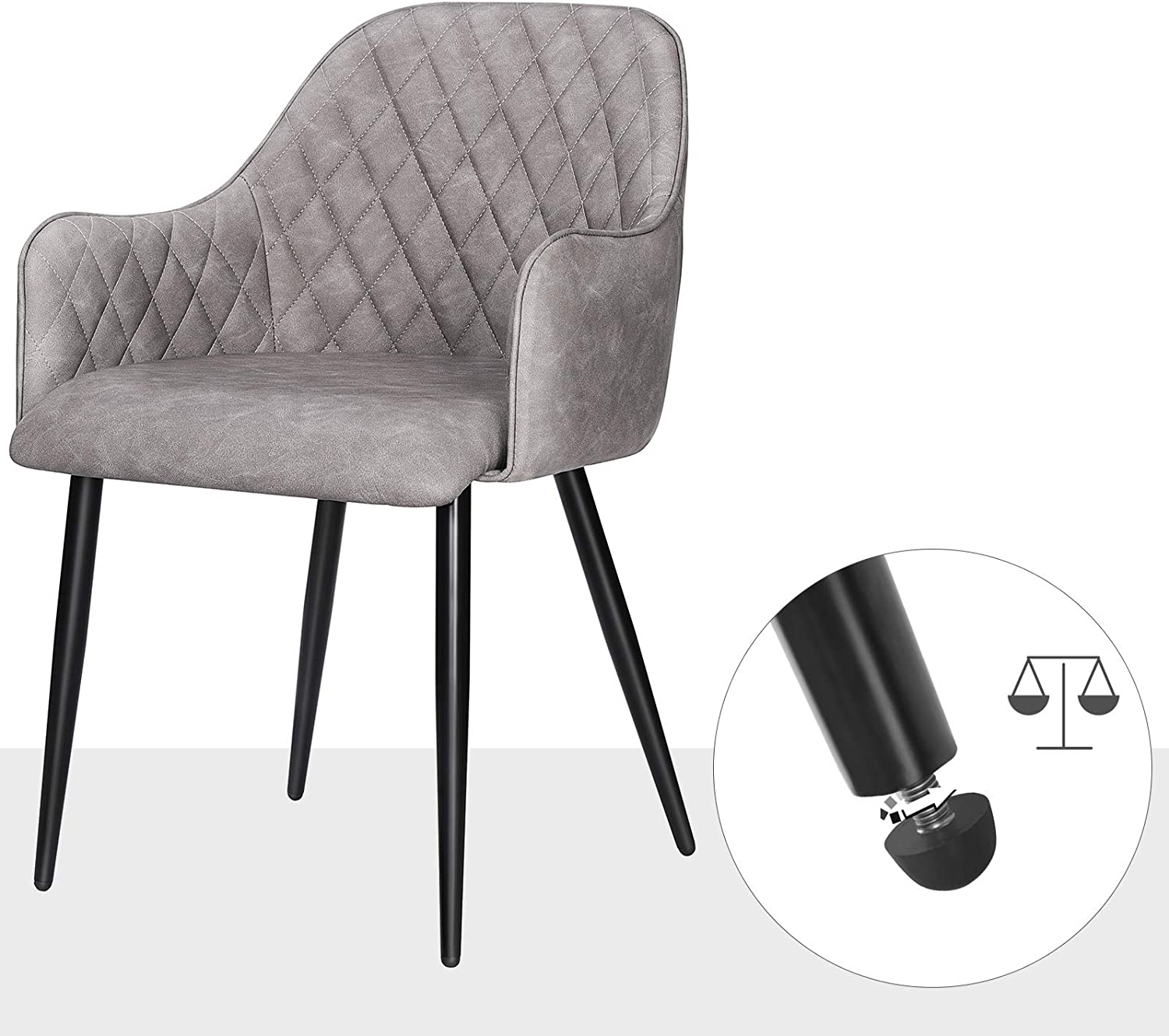 Išbandykite jaukumą: Ergonomiškas dizainas, minkštas putplasčio paminkštinimas, aukštos kokybės PU danga ir patvarios metalinės kojos – visos šios medžiagos sukuria tvirtą ir patogią kėdę. Dar geriau, kad kėdė yra gražios išvaizdos, kuri įneša malonią atmosferą į bet kurį kambarį.
