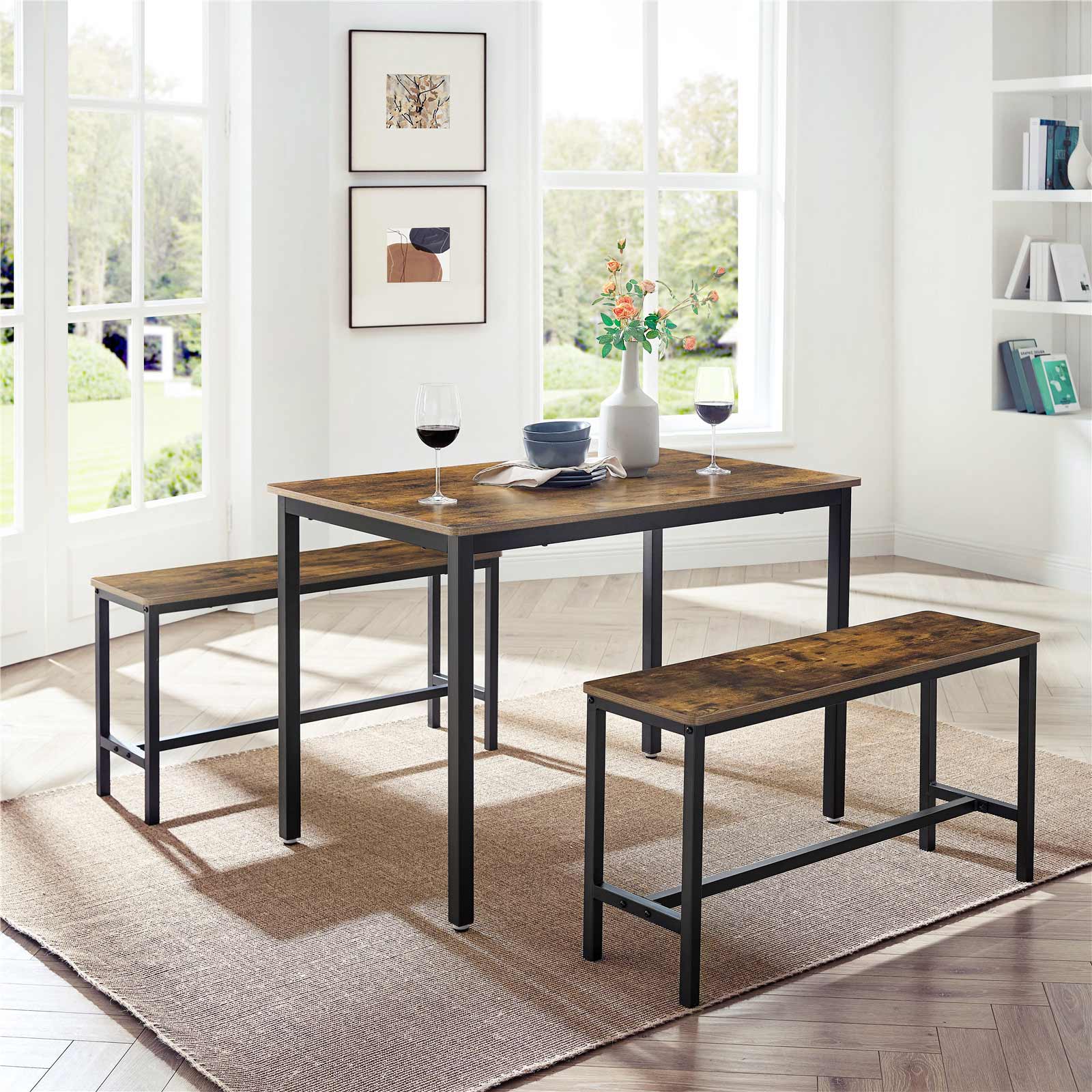 Šis valgomojo komplektas, kurį sudaro stalas ir du suolai, yra puikus pasirinkimas jūsų namų interjerui. Komplektas pasižymi vintažine ruda-juoda spalva, kuri suteikia elegancijos ir stiliaus jūsų valgomojo erdvei.