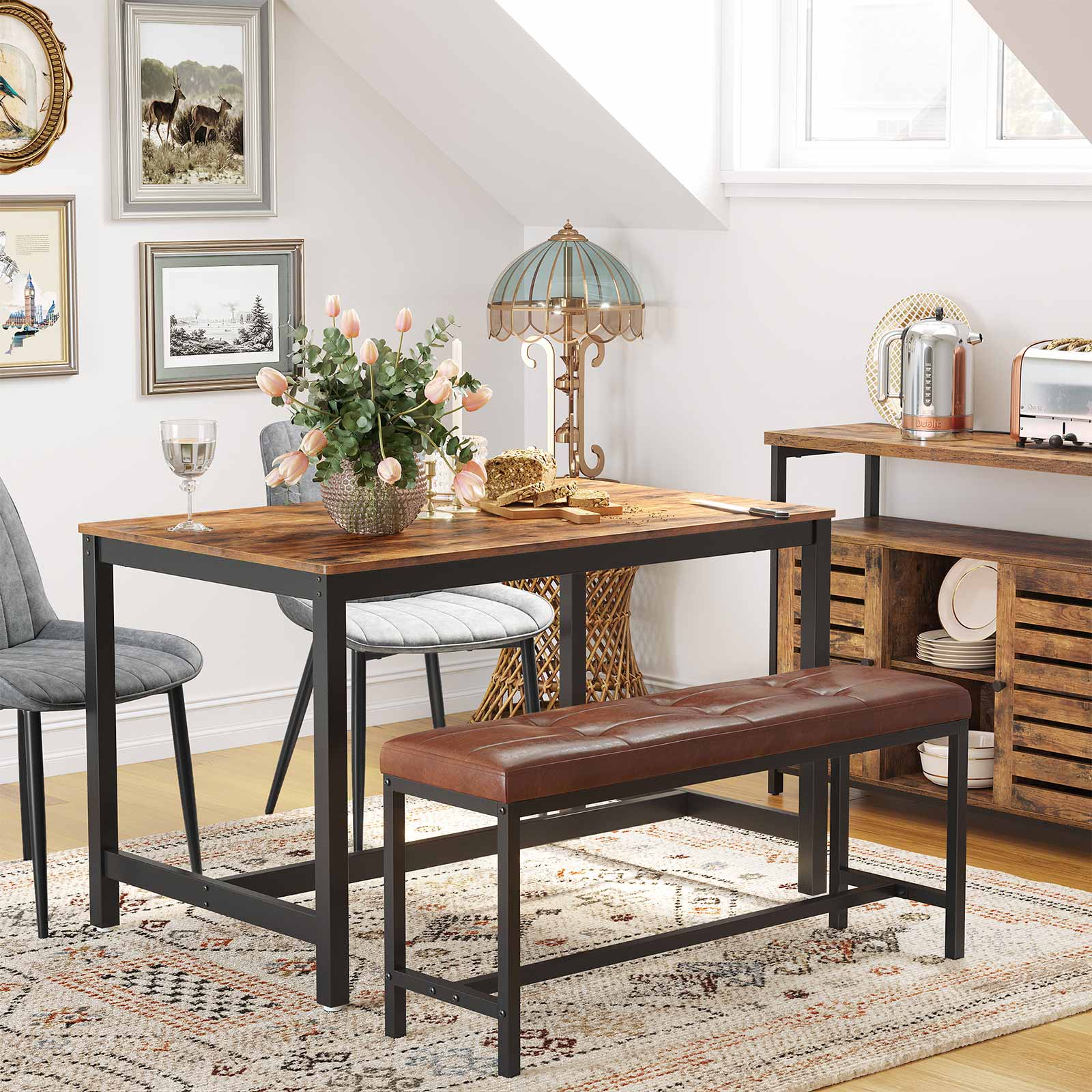 Šis valgomojo / prieškambario suolas, rudai juodas, yra puikus pasirinkimas jūsų namams. Jo elegantiškas dizainas ir funkcionalumas suteiks jūsų interjerui išskirtinumo.
