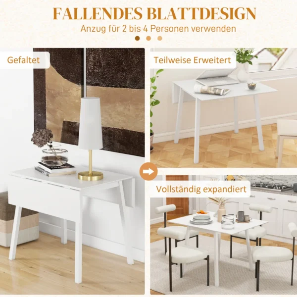 Atraskite HOMCOM sulankstomo valgomojo stalo žavesį ir universalumą, kuris puikiai tinka bet kuriuose namuose. Dėl naujoviško sulankstomo dizaino šis medinis sulankstomas stalas iš jaukios vietos dviems tampa erdviu valgomojo stalu keturiems asmenims. Pagamintas iš natūralios pušies medienos ir nudažytas aliejiniais dažais, jis žada stabilumą ir stilių, o sulankstomas dizainas tinka kompaktiškoms erdvėms.