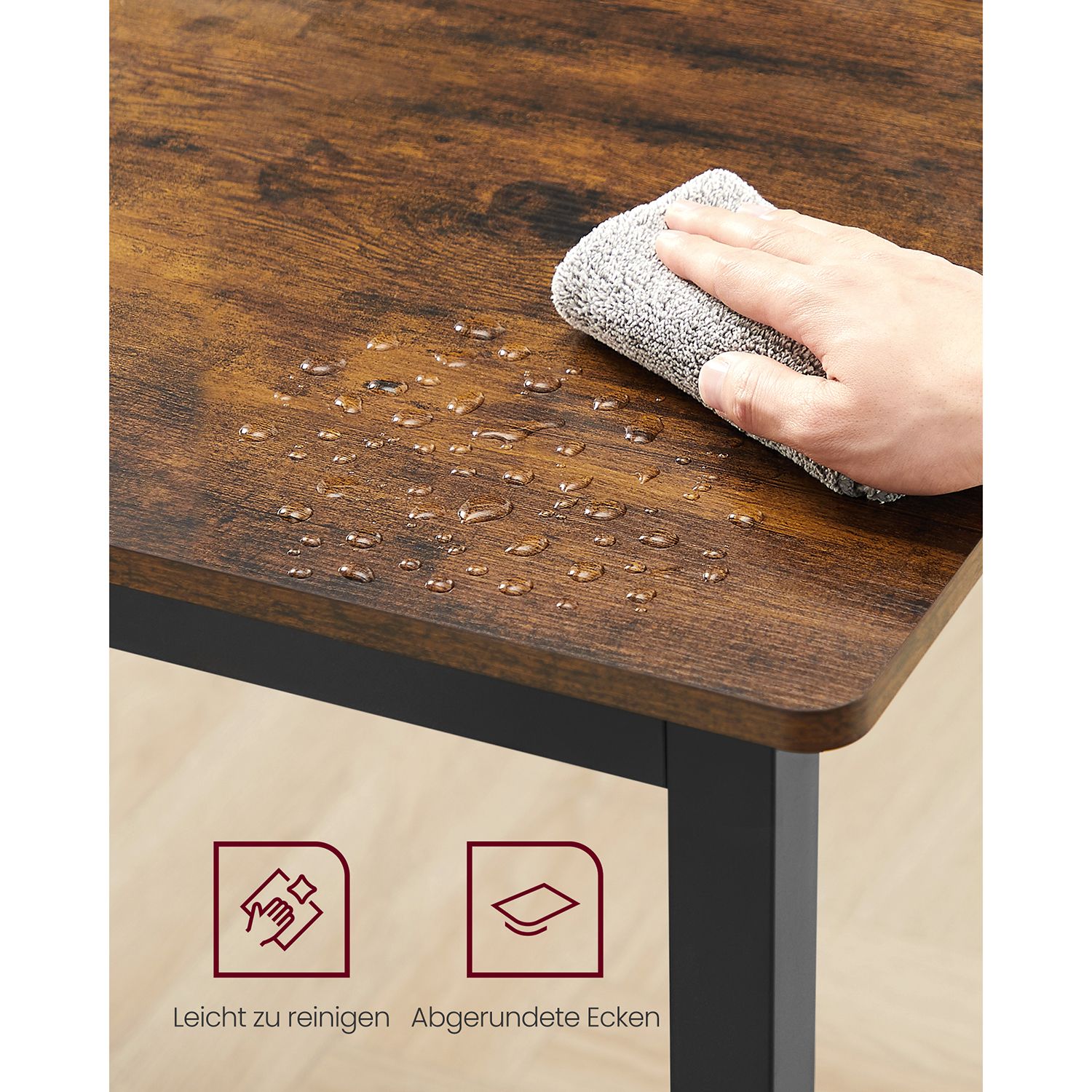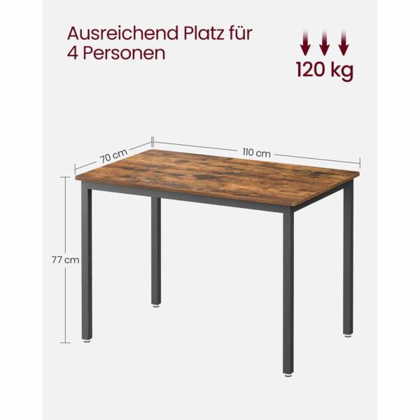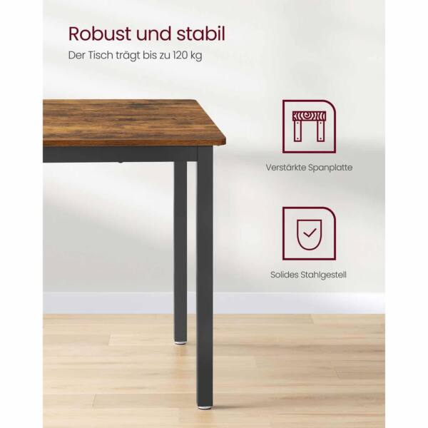 Šis valgomojo stalas, skirtas 4 asmenims, yra puikus pasirinkimas jūsų namų interjerui. Jo vintažinė ruda-juoda spalva suteikia elegancijos ir išskirtinumo, o tvirtos medžiagos užtikrina ilgaamžiškumą.