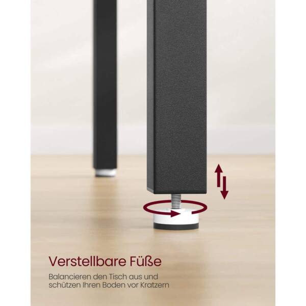 Stalas pagamintas iš aukštos kokybės medžio drožlių plokštė (MDP) ir plieno, todėl jis yra ne tik stilingas, bet ir patvarus. Jo dydis – 70 x 110 x 77 cm – puikiai tinka tiek mažesnėms, tiek didesnėms erdvėms.