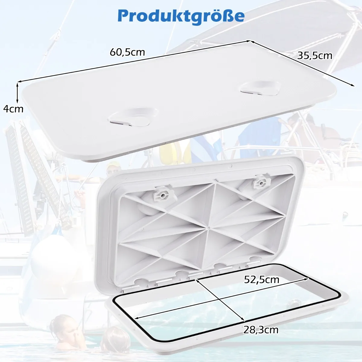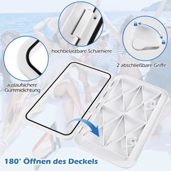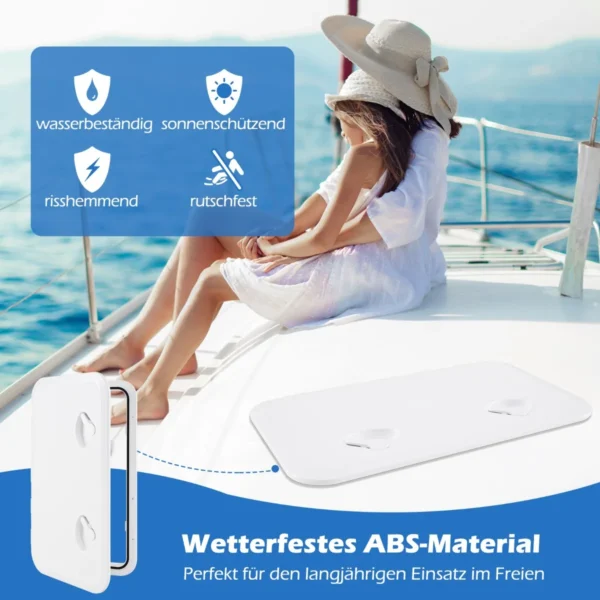 Valties liukas 60,5×35,5×4 cm baltos spalvos yra praktinis denio priedas, skirtas patogiam prieigai prie laivo vidinių erdvių. Pagamintas iš tvirtos ABS medžiagos, jis užtikrina ilgaamžiškumą ir atsparumą įvairioms oro sąlygoms.