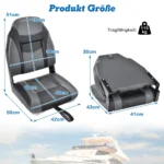 Valties sėdynė 50x42x51 cm tamsiai pilkos ir juodos spalvos yra sukurta patogiam ir funkcionaliam naudojimui valtyje. Ergonomiškas dizainas ir patvarios medžiagos užtikrina ilgaamžiškumą bei komfortą vandens sporto ir žvejybos metu.