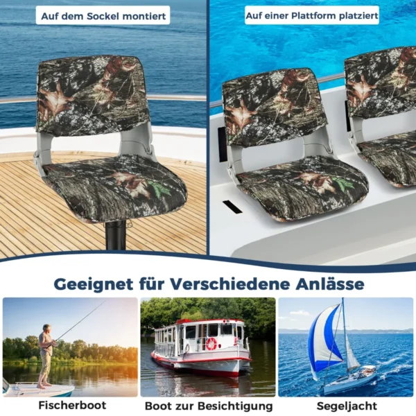 Valties sėdynė 50x50x47cm., įvairių spalvų – praktiškas sprendimas kelionėms valtimi ir žvejybai. Sulankstoma ir lengva valties kėdė suteikia patogumą ilgesnėse vandens kelionėse. Paminkštinta sėdynė ir atsparus užvalkalas garantuoja funkcionalumą bei ilgaamžiškumą.