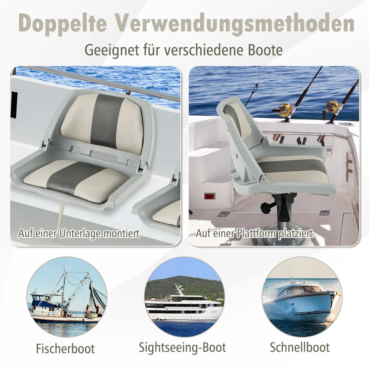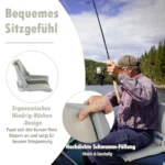 Valties sėdynė 57x51x35 cm baltos ir pilkos spalvos yra pritaikyta įvairioms vandens transporto priemonėms, tokioms kaip žvejybos ir motorinės valtys. Ergonomiškas žemas atlošas bei paminkštintos pagalvėlės užtikrina komfortą ilgų kelionių metu.