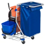 - ✔ Profesionalus valymo vežimėlis su šiukšlių maišeliu ir šluostės presu