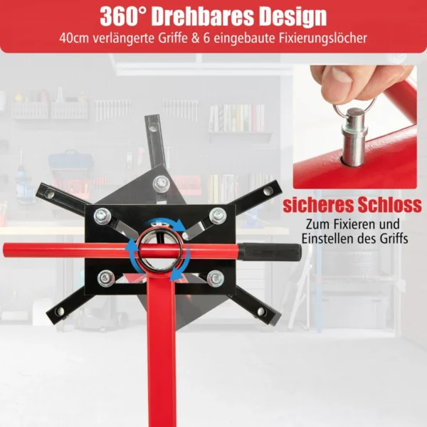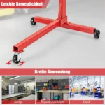 Variklio stovas ant ratų – praktiškas sprendimas variklio remontui ir techninei priežiūrai. Raudonos ir juodos spalvos stovas su besisukančia galvute ir reguliuojamomis rankenomis užtikrina patogų prieigą prie variklio dalių įvairiomis pozicijomis.