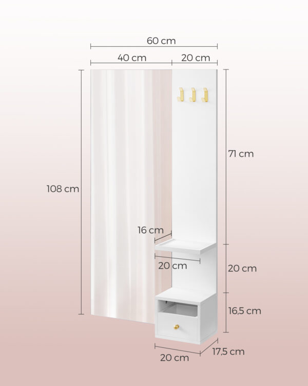 • Maksimali lentynos statinė apkrova: 2,5 kg – praktiška lentyna, kurioje galite laikyti smulkius daiktus ar dekoracijas.
