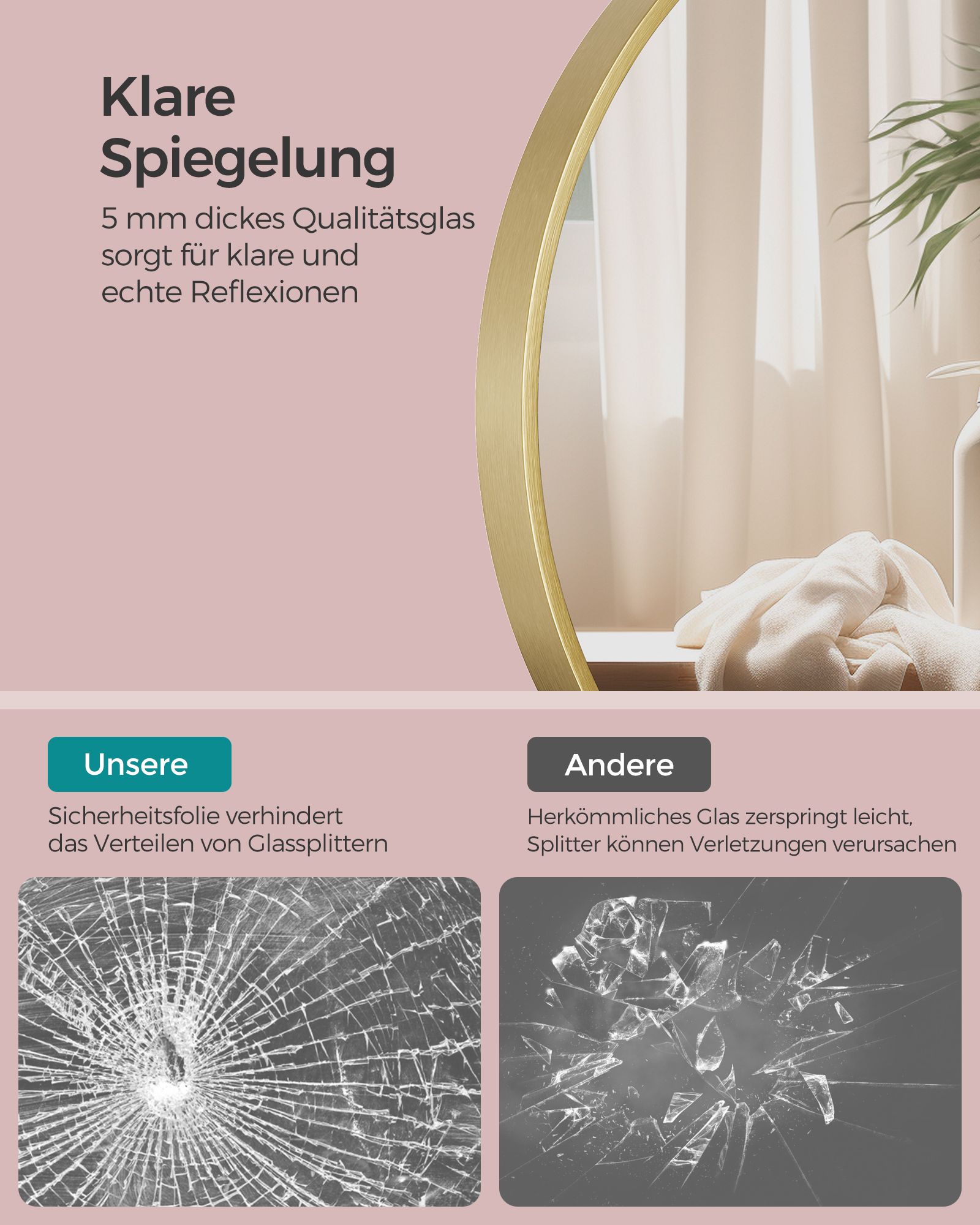 Pristatome elegantišką ir stilingą veidrodį, kuris taps išskirtiniu jūsų interjero akcentu. Šis auksinės spalvos veidrodis ne tik suteiks jūsų erdvei prabangos, bet ir padės sukurti šviesos ir erdvės pojūtį.