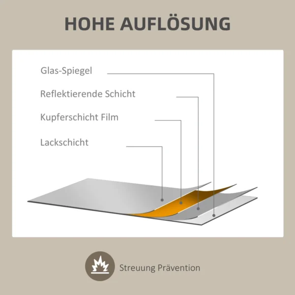 • ✔ Storas, daugiasluoksnis veidrodžio stiklas užtikrina aiškius, nedūžtančius atspindžius