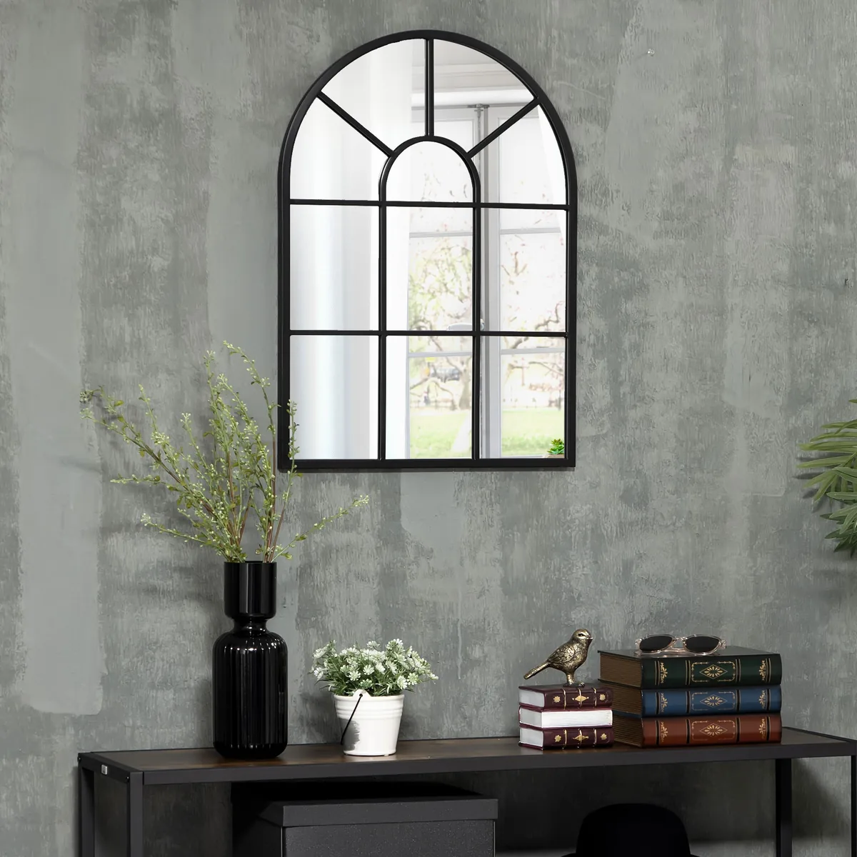 - ✔ Arkinis spintos veidrodžio lango rėmas su elegantiškomis langų grotelėmis stilingiems akcentams