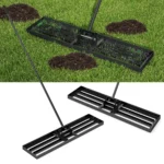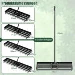 Vejos lyginimo grėblys 106x25x170cm, juodos spalvos, skirtas patogiai ir efektyviai vejai išlyginti. Didelė plokštė ir ergonomiška rankena leidžia išlaikyti veją tolygiai lygų be papildomų pastangų. Šis lauko įrankis puikiai tinka kiemui, sodui ar golfo aikštynui.