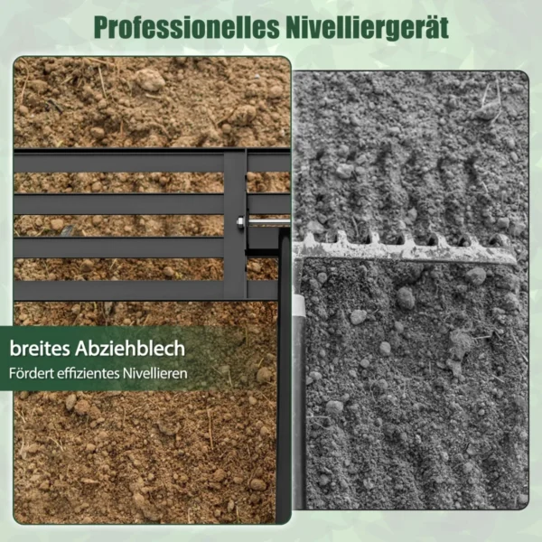 - Vejos išlyginimo grėblys su 106 x 25 cm plokšte leidžia lengvai pašalinti akmenis ir suskaidyti gumuliukus.