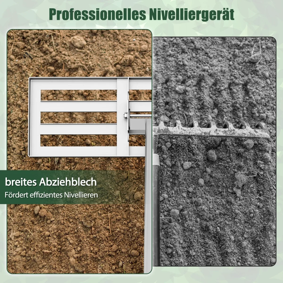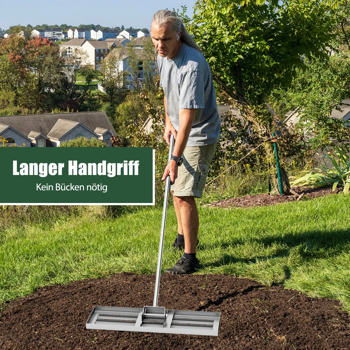 - Plati 75×25 cm grėblio galvutė padeda greitai išlyginti didelius plotus.