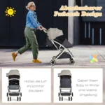- Reguliuojamas stogelis nuo saulės su galimybe pritvirtinti tinklelį nuo uodų ir kvėpuojantį tinklelį.