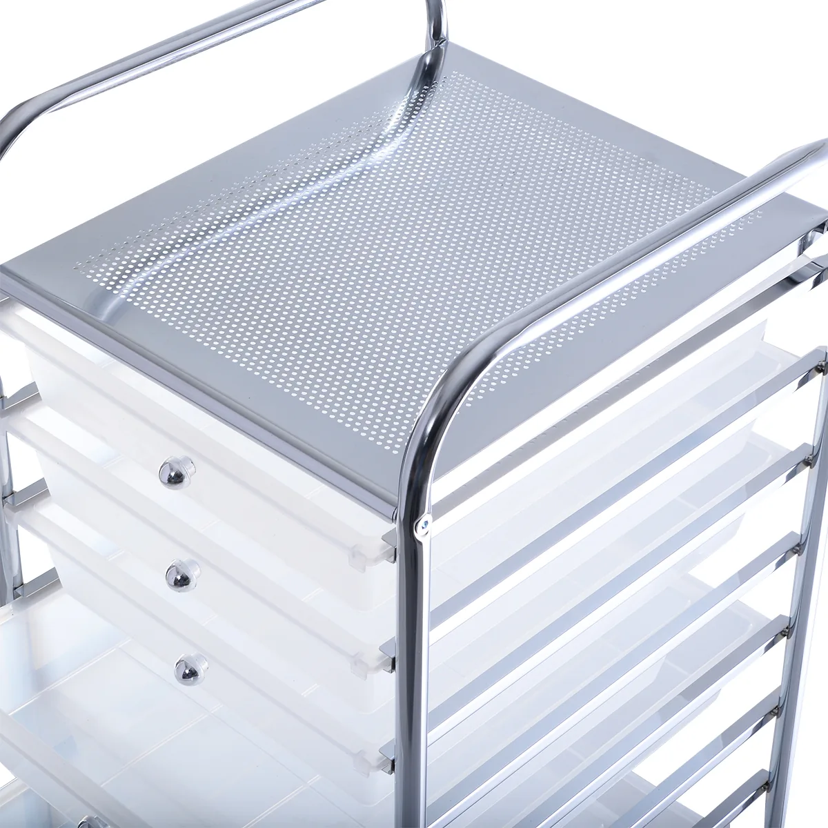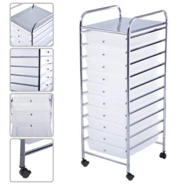 - Mobilus konteineris su 10 plastikinių stalčių bei perforuota metaline lentyna leidžia gerai organizuoti daiktus.