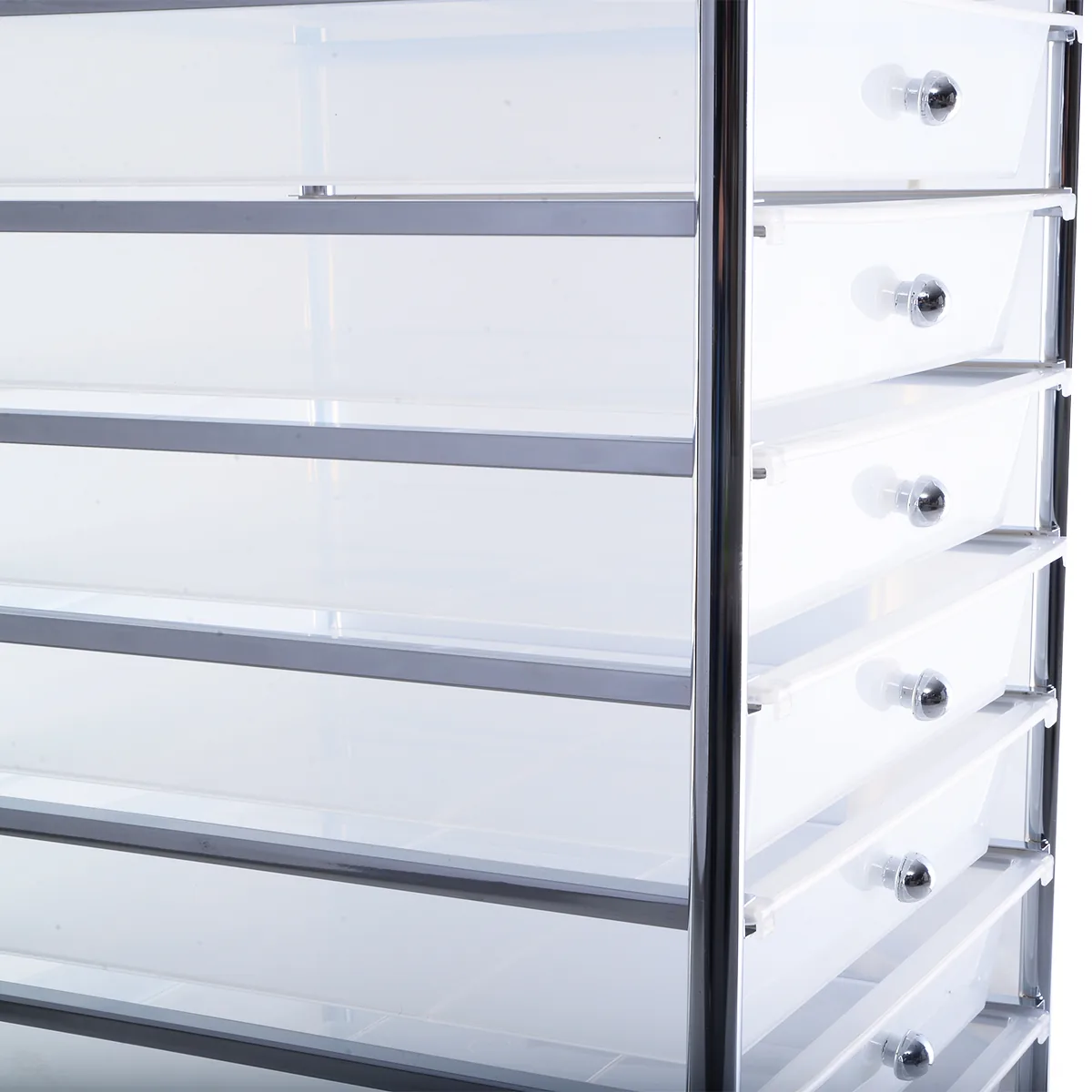 - 10 lengvų plastikinių stalčių, kurie sukraunami ir suteikia daug sandėliavimo vietos.