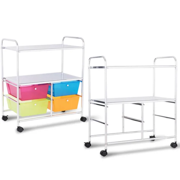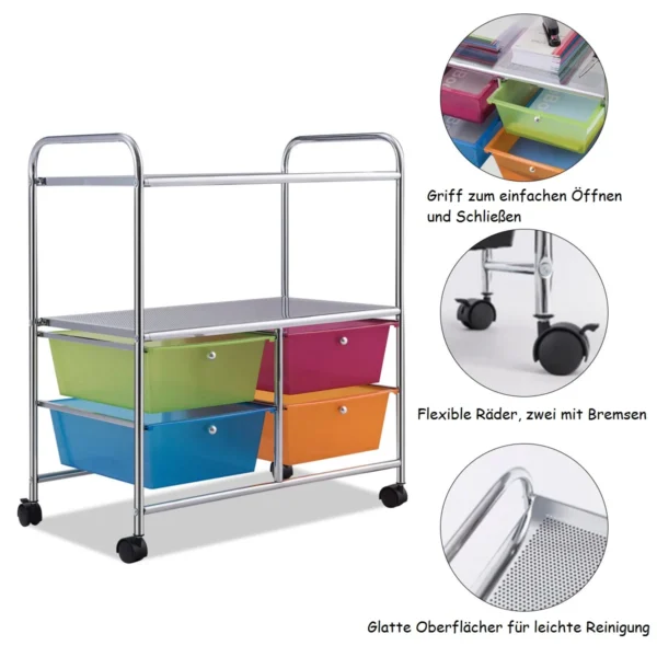 Vežimėlis su stalčiais 58,5x37x75 cm yra praktiškas sprendimas saugojimui namuose, biure ar kitose ribotos erdvės patalpose. Pagamintas iš geležies ir plastiko, jis užtikrina patvarumą ir lengvą naudojimą. Mobilumas ir erdvūs konteineriai leidžia efektyviai organizuoti įvairius daiktus.