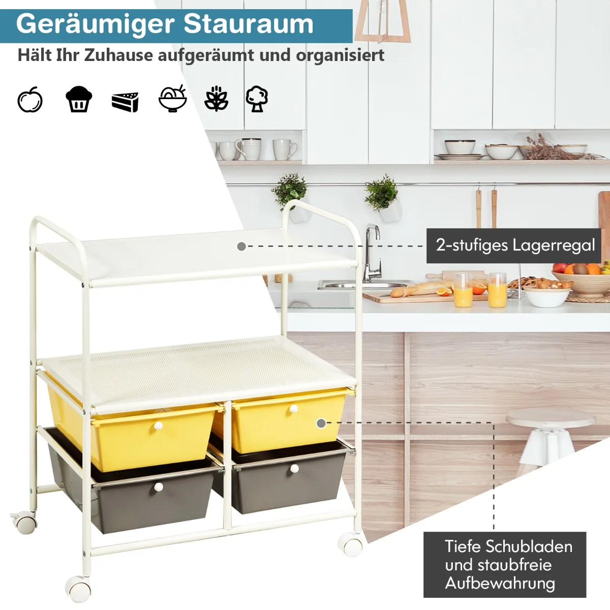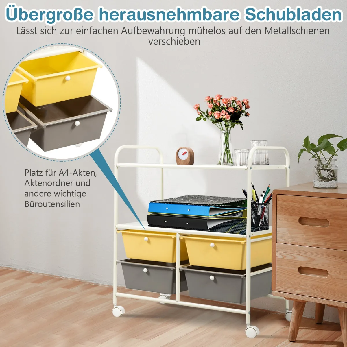 Vežimėlis su stalčiais 63,5x37x75 cm yra praktiškas sprendimas namų, biuro ar kitoms patalpoms, kur reikia vietos daiktų laikymui ir tvarkai palaikyti. Pagamintas iš geležies ir plastiko, šis vežimėlis užtikrina ilgaamžiškumą ir patogumą kasdieniam naudojimui.