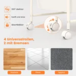 • Ratukai sukasi 360°, 2 ratukai su stabdžiais stabilumui užtikrinti.