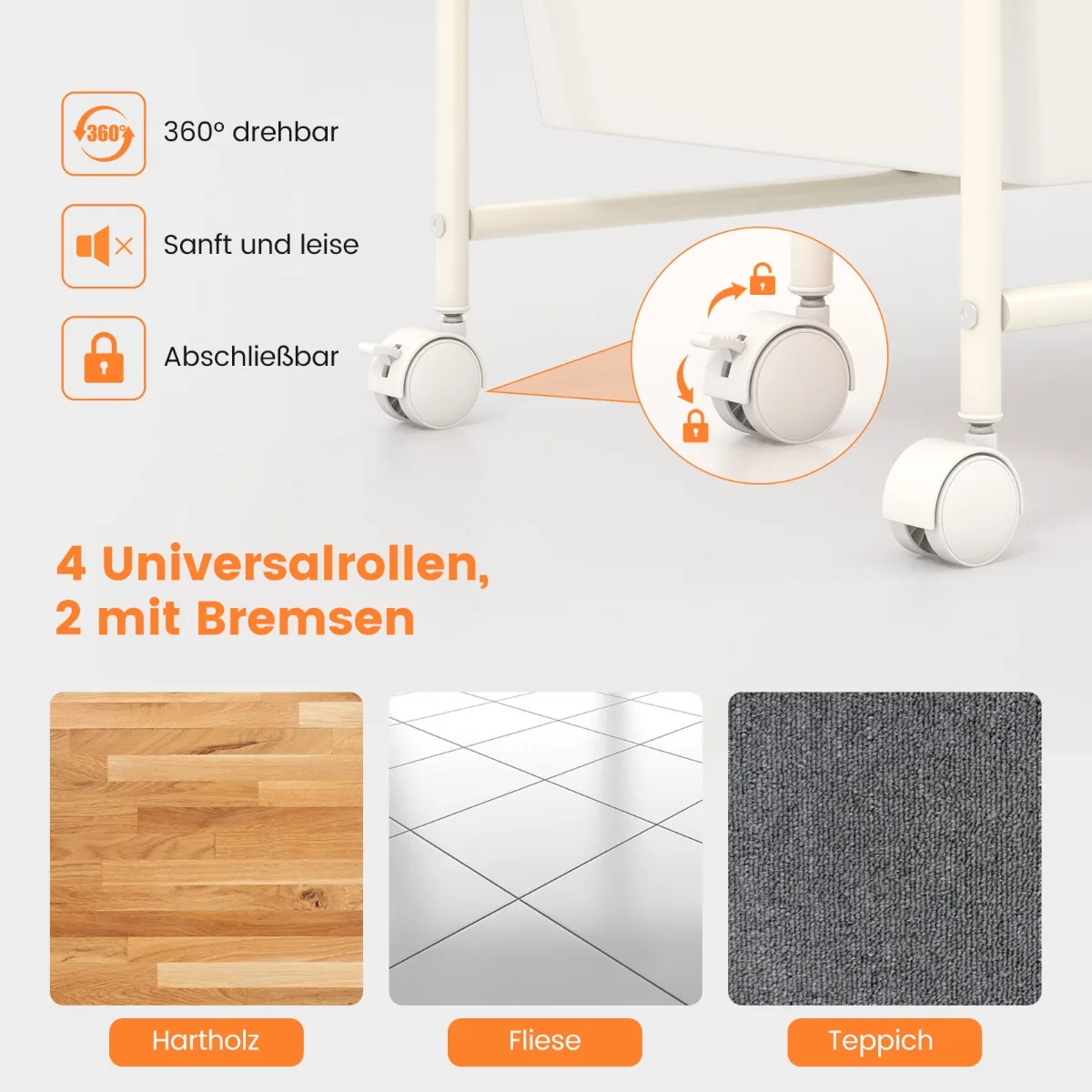 • Vežimėlis tinkamas naudoti biure, svetainėje, žaidimų kambaryje, salonuose ar kaip saugojimo sprendimas įvairiems daiktams.