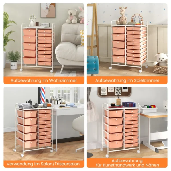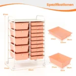 - Universalus vonios vežimėlis su 15 plastikinių stalčių ir viena lentyna.