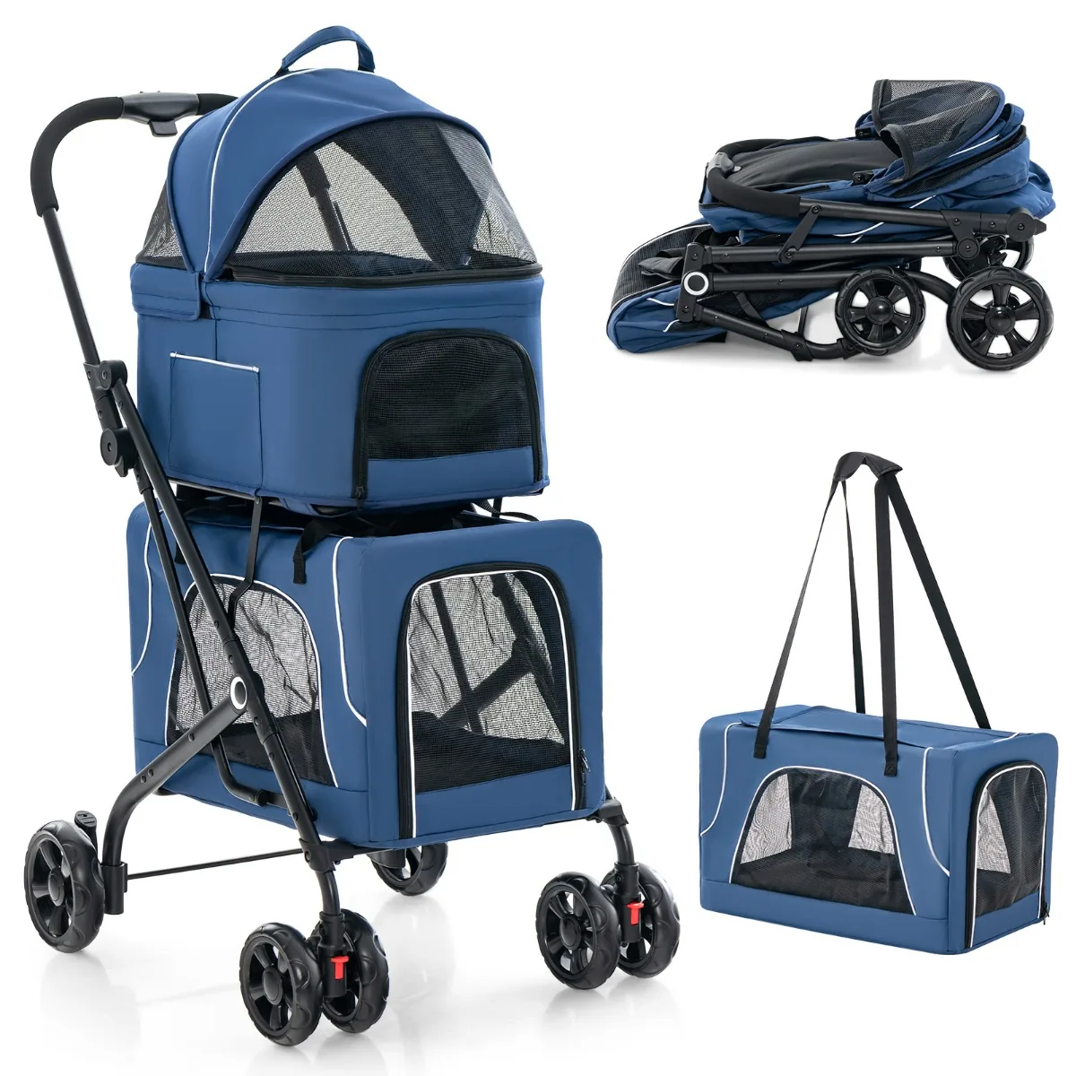 Vėžimėlis šunims 53x84x105cm, mėlynos/juodos spalvos, skirtas patogiam ir saugiam augintinių vežimui gamtoje ar kelionėse. Universalus dizainas leidžia naudoti vežimėlį kaip augintinio nešioklę arba automobilinę kėdutę, pritaikytą mažiems ir vidutinio dydžio šunims ar katėms.