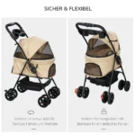 Jei ieškote paprasto naudoti, patogios ir praktiškos transporto priemonės sužeistiems ar pagyvenusiems augintiniams, turėtumėte patikrinti šį šunų vežimėlį iš PawHut. Erdvus viduje ir tinklinis langas, jūsų šuo jausis nuostabiai patogiai. Puodelių laikiklis ant stūmimo rankenos ir grindų krepšelis leidžia lengvai pasiimti viską, ko reikia, o sklandžiai einantys ratai užtikrina didelę judėjimo laisvę.