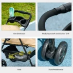 - ✔ Keturi ratai: su stabdžiais gale, du priekyje pasukami 360°