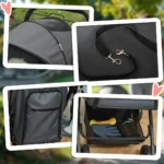 - ✔ Oksfordo medžiaginis dangtelis uždengia krepšį ir yra sukurtas su tinkliniu langu, kad į jį patektų oras. Reguliuojamas baldakimas apsaugai