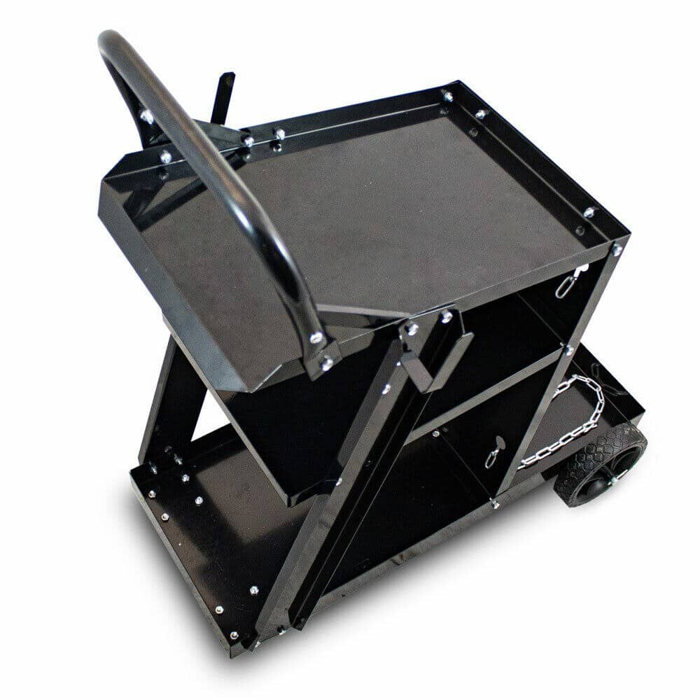 Tvirtas ir stabilus Bituxx suvirinimo vežimėlis puikiai tinka gabenti suvirinimo įrangą, dujų balionus, inverterius ir priedus.. 3 lentynose yra pakankamai vietos įrankiams ir priedams laikyti. Dujų balionėlį taip pat galima pritvirtinti priekyje ir pritvirtinti 2 grandinėmis. Du dideli ratai ir 2 pasukami ratukai užtikrina optimalų manevringumą.Suvirinimo vežimėlis pagamintas iš aukštos kokybės plieno ir skirtas iki 40 kg apkrovai. Savybės: – Talpina iki 40 kg – 3 lentynos įrankiams arba MAG/TIG suvirintojams – Dujų balionų, įskaitant grandinės užraktą, laikymo vieta – 2 žarnų kabliukai – Du dideli 8 colių ratai – Du 3 colių pasukami ratukai SPECIFIKACIJOS – Medžiaga: plienas – Skardinė išlaikyti iki: 40 kg – Svoris: 11 kg – Dydis (I / P / A): 70 x 39 x 88 cm – Viršutinės lentynos matmenys (L / P): 45 x 28 cm – Vidurinės lentynos matmenys ( Ilgis / P): 38 x 28 cm – Apatinės lentynos matmenys (ilgis / P): 44 x 29 cm – Dujų baliono paviršiaus matmenys (I / P): 26 x 29 cm ĮSKAIČIUOTA – 1x suvirinimo vežimėlis Matmenys : 80 x 40 x 20 cm