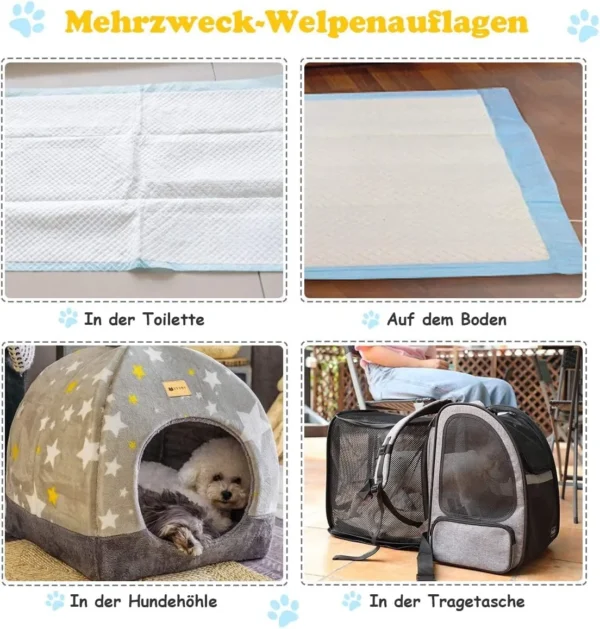 - Vienkartinės palutės šunims su 5 sluoksnių konstrukcija greitai sugeria skysčius ir saugo nuo nutekėjimo.