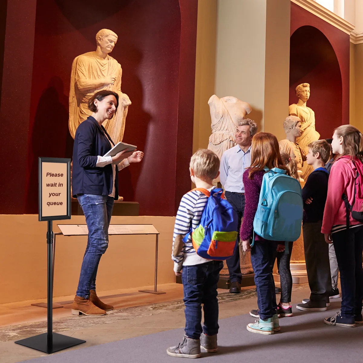 - Informacinis stovas gali būti pasukamas portreto arba kraštovaizdžio formatu (360° reguliavimas).