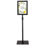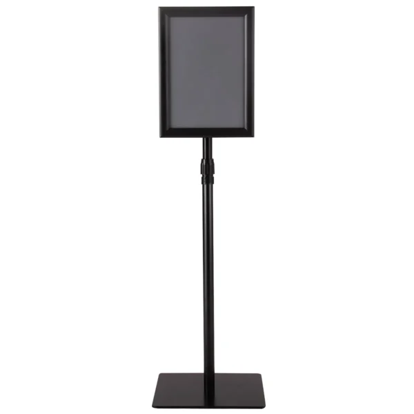 Vienpusis informacinis stovas 28x28x118 cm, juodos spalvos, yra praktiškas sprendimas informacijos pateikimui viešose vietose. Tvirtas aliuminio rėmas ir nerūdijančio plieno stovas užtikrina stabilumą ir ilgaamžiškumą. Šis informacinis stovas puikiai tinka reklamuoti akcijas, pasiūlymus ar kitą svarbią informaciją.